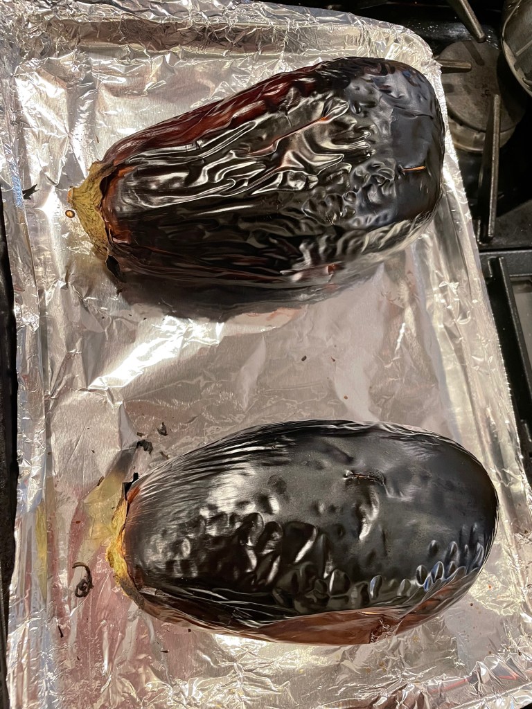 Tip 1: We broiled the eggplant. It can take a while, but go until it is black and charred even if it takes longer than the recommended time.