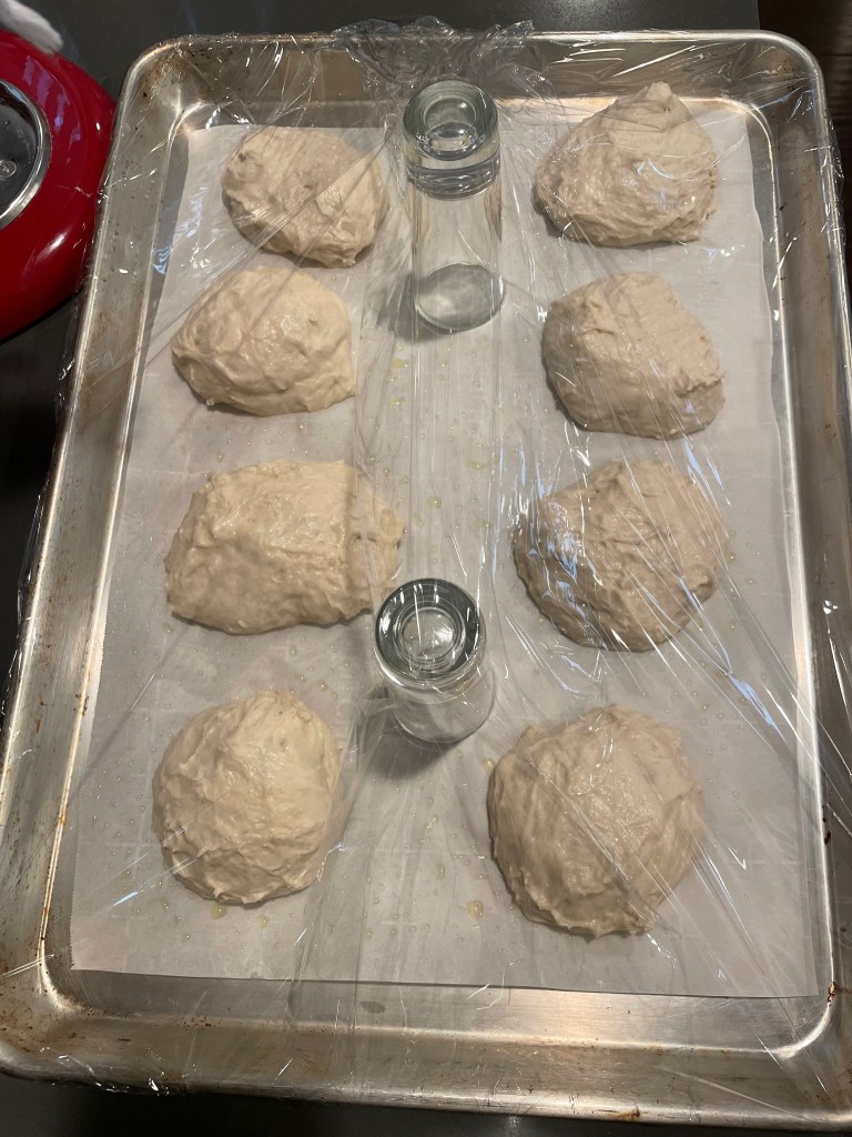 Tip: If your dough is too sticky it can be a bit difficult to maneuver the balls. Slightly oiled hands can help though – but be careful to not overuse the oil while forming the ball, as the friction is key to forming the balls. In the example above, you can see how it might look if your dough is too sticky and would benefit from oil to make a better ‘ball’ (they would end up smooth; as opposed to in the picture).