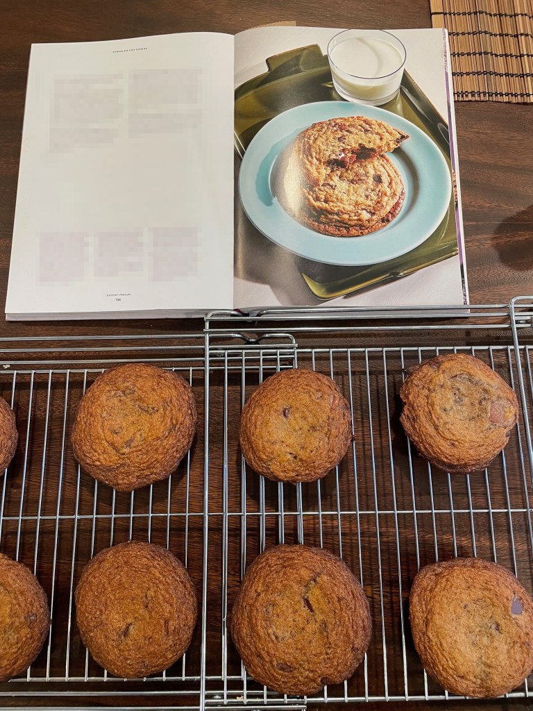 This is a great chocolate chip cookie recipe and one of the only recipes that took us 2 tries to get right (thought it is a fairly easy recipe). This is not a mind-blowing chocolate chip cookie, but it is a very good one. The mix of chocolates used and brown butter are great touches. Note though, that otherwise the cookies are fairly simple and flat. Lastly, note that the video instructions are very different than the instructions in the book. We found the video instructions to be clearer and work better than the book instructions.