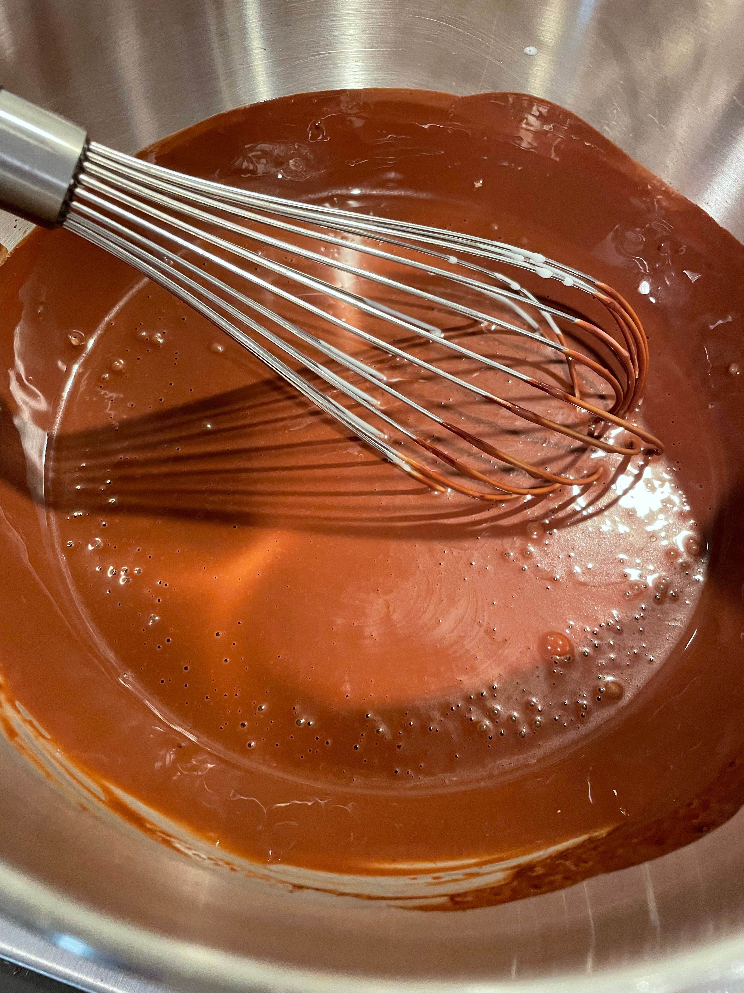 Tip 4: Melt the chocolate using the double-boiler method. It can be made right before you start and cool while you make the rest of the frosting and it should cool in time. Do keep an eye on it and make sure it doesn’t solidify. If it starts to solidify you can re-melt it using the same method, although preferably just keep it near something warm (like above an oven – though don’t let it get too hot) if you notice it starting to harden and periodically stir it.