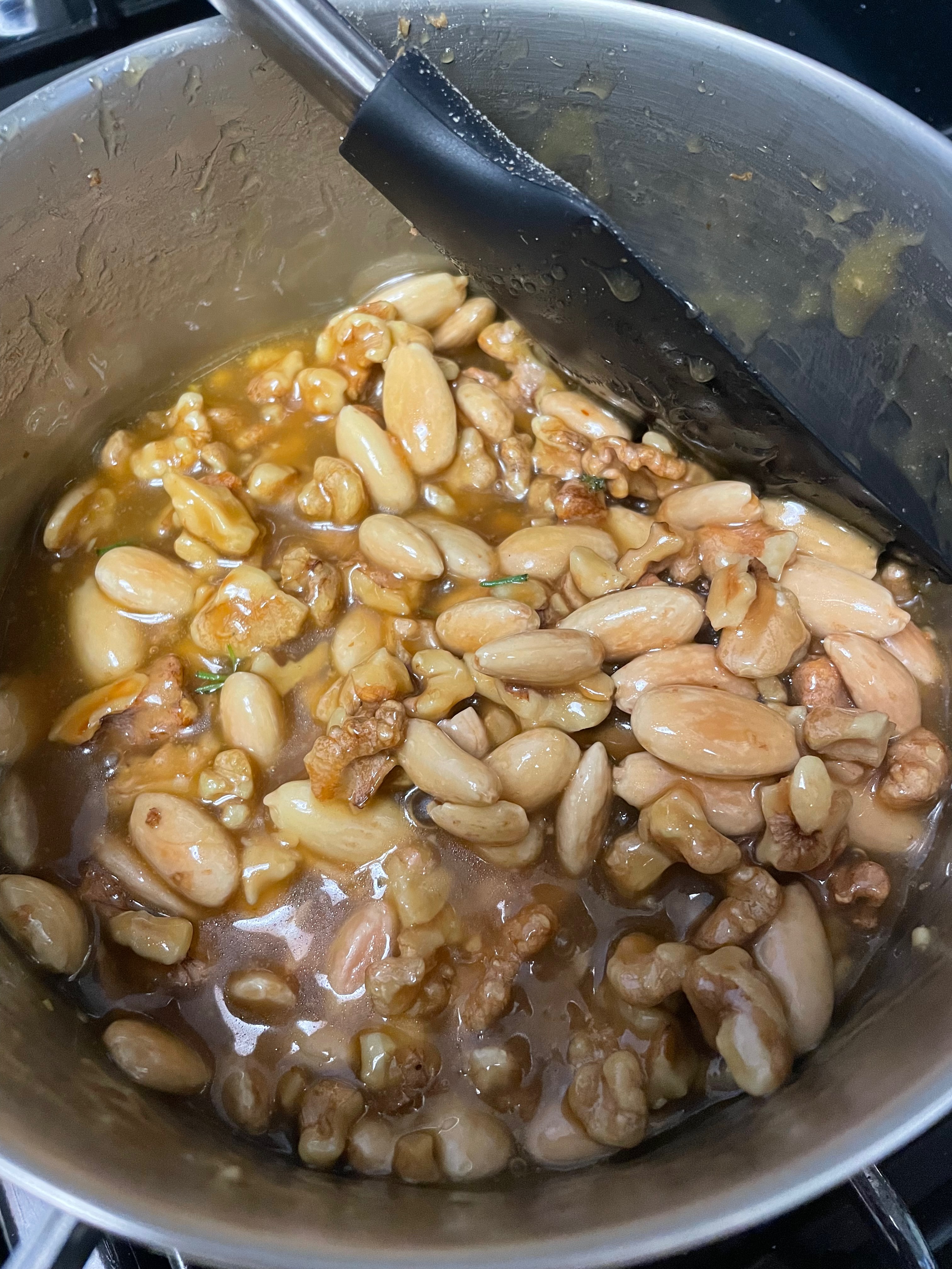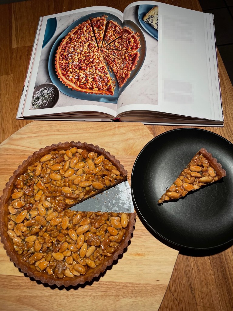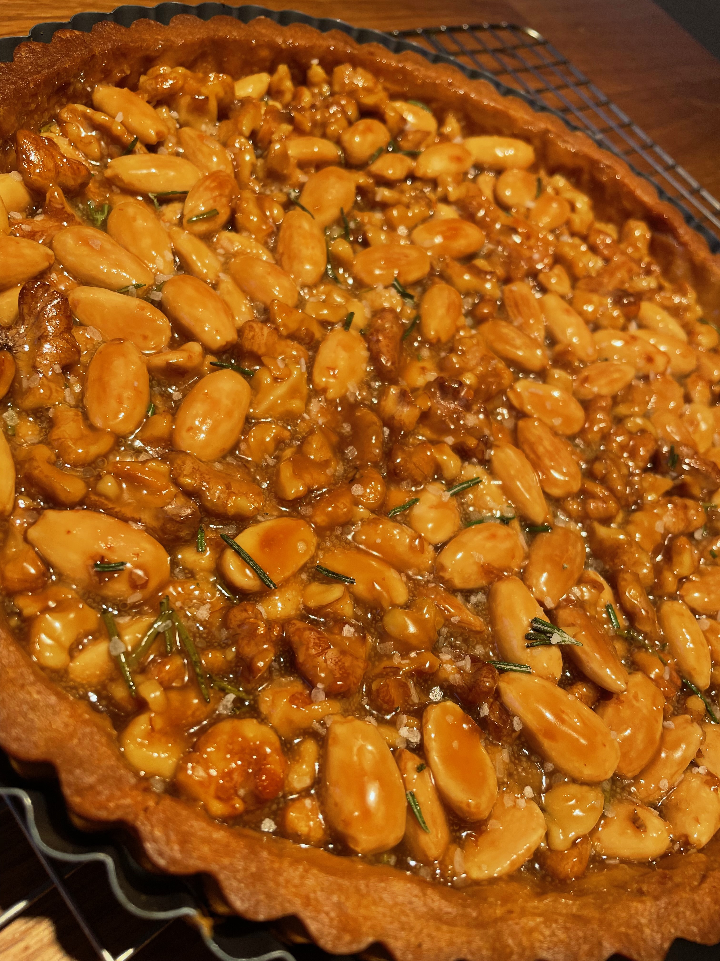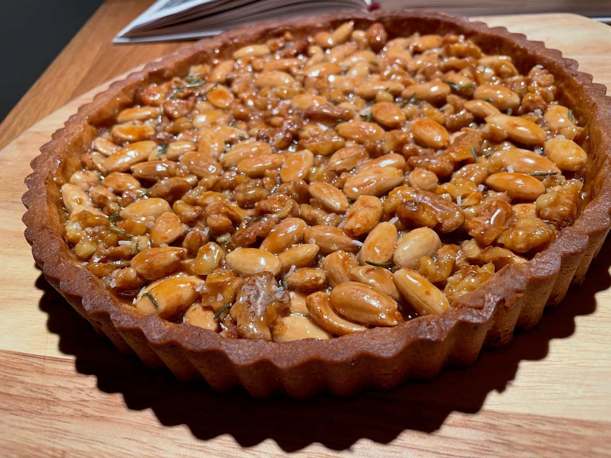 This is another fairly easy tart recipe, especially if you’ve made the base Sweet Tart Dough before. The filling is especially delicious and the rosemary works surprisingly well. It’s a very pretty tart despite the relatively beige ingredients. Note that the rosemary can be omitted and it’ll still be delicious. Likewise the recipe recommends using pine nuts and walnuts, but it also goes great with blanched almonds and walnuts instead.