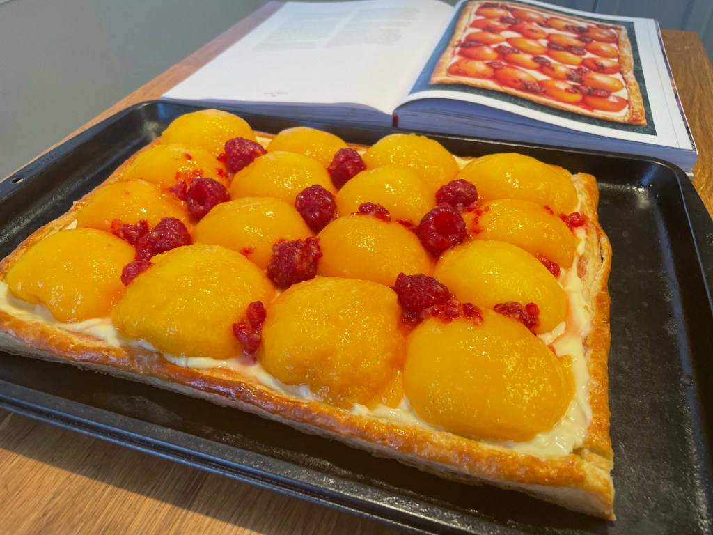 | Recipe: Peach Melba Tart | Special Equipment: Large Baking Sheet, Large Dutch Oven |