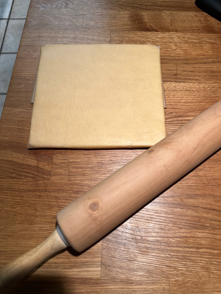 Tip 1: First get the butter into a rough square and then create a package with the parchment paper (tape to seal and flip over). To get it into a perfect square, simply hold one corner and roll into the opposite corner using the rolling pin.