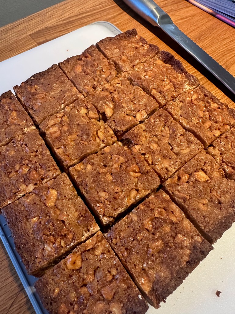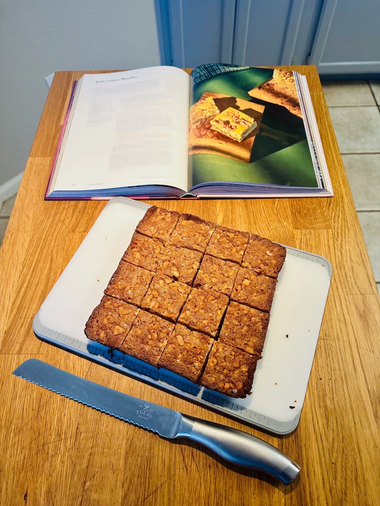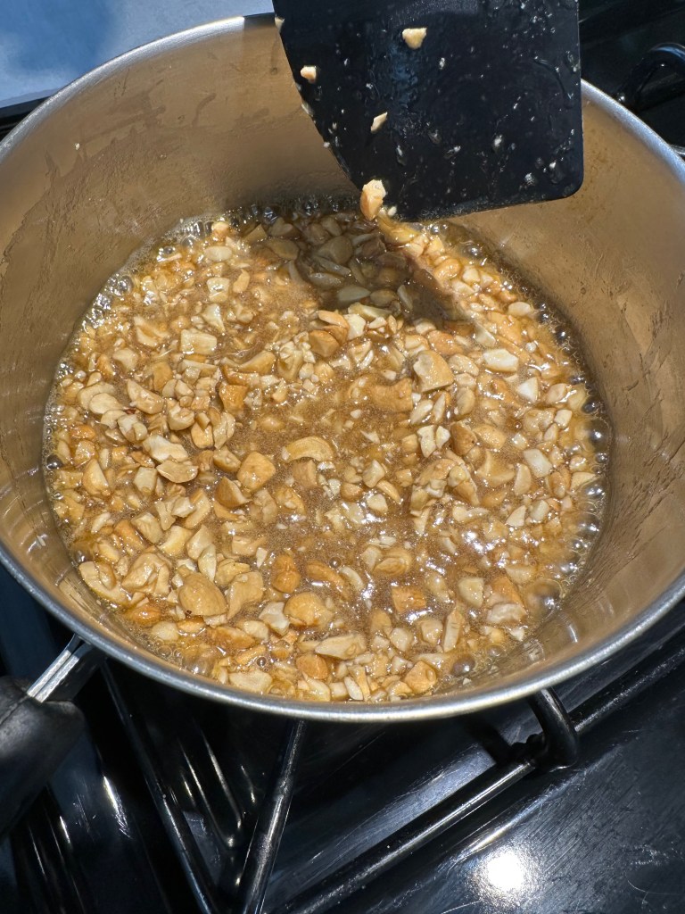 Tip 2: Baking in multiple batches as recommended is ideal even if it seems pointless based on the instructions. If you find your first batch isn’t forming the lattice shape due to not being pressed down thinly enough you can easily adjust on your second batch (whereas if you did both batches at once you couldn’t learn+adjust). The layer should quite thin (it’s a bit difficult to go too thin). The main impediment to being thin enough is not crushing the hazelnuts thin enough, as called out above. Regardless of whether the shape fully forms though, the end result tastes nearly the same.