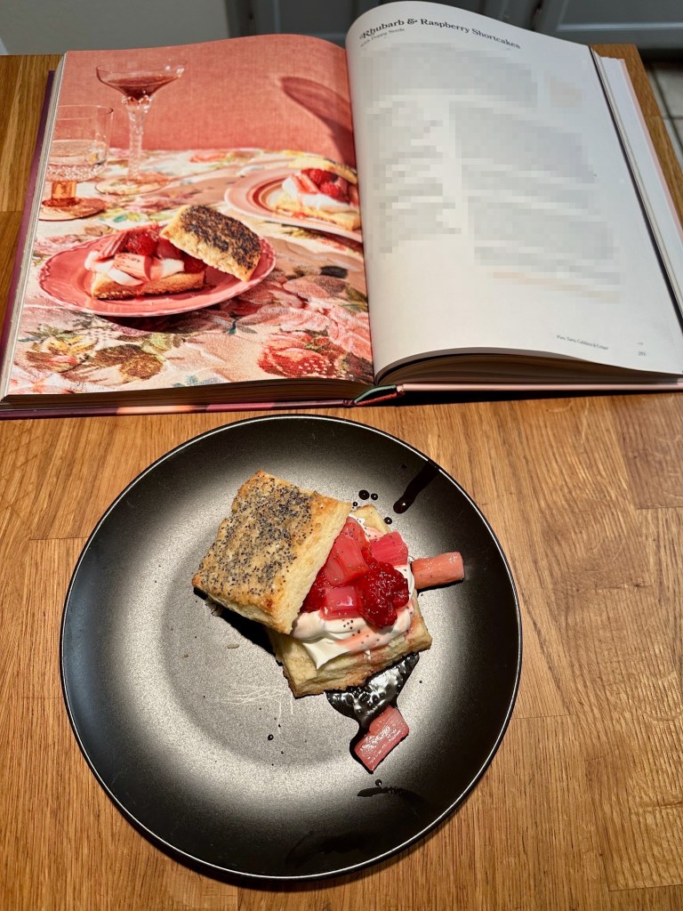 This is our first recipe attempt from Claire’s new book What’s For Dessert. It’s a great spring/summer recipe that was a good balance of technique, difficulty, and taste. The book is quite similar to Dessert Person, but with even more helpful tips. At a glance the book seems a bit more accessible and with many more recipes. It’ll be interesting to see how the overall diversity of recipes and average difficulty+score compare to Dessert Person. This first recipe could have been straight from Dessert Person and is a great one.