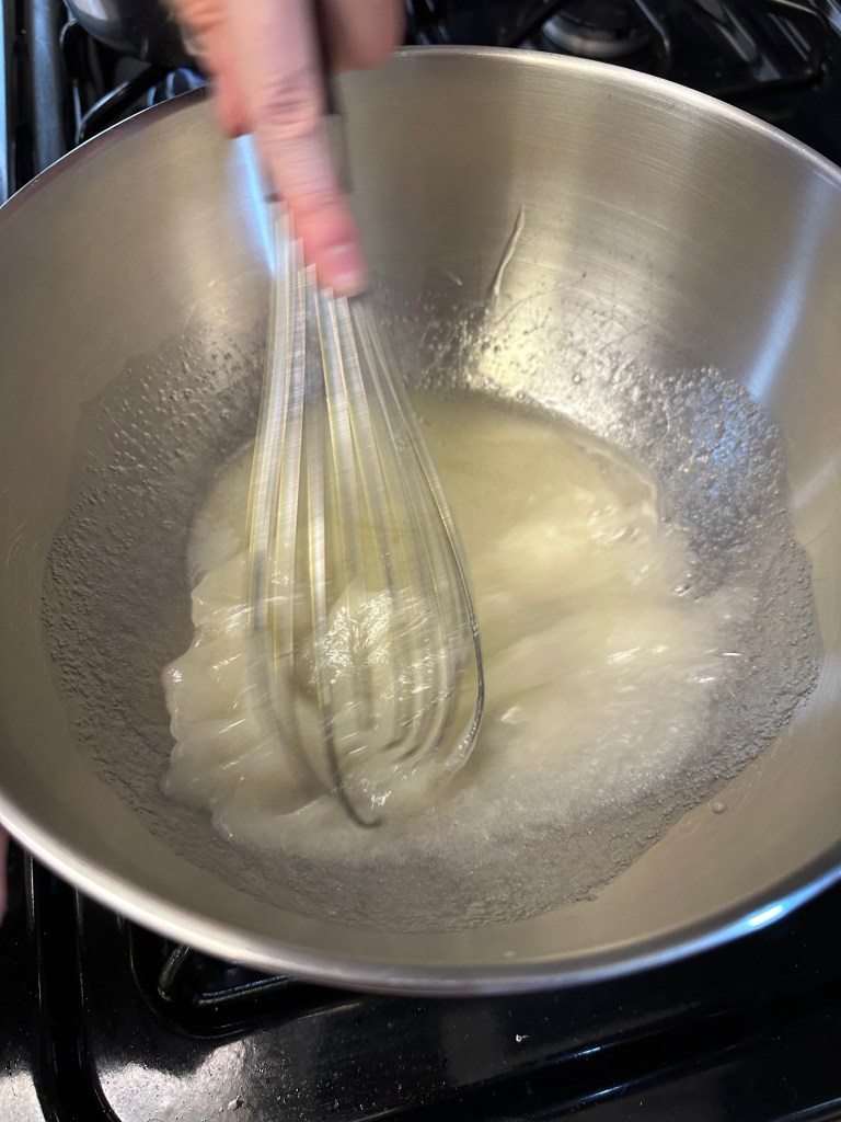 Tip: The marshmallow making process would likely be quicker and easier if you used a stand mixer (and you probably should if you have one). Go until you are as close to stiff peaks as possible and don’t worry if you take significantly more or less time than written.