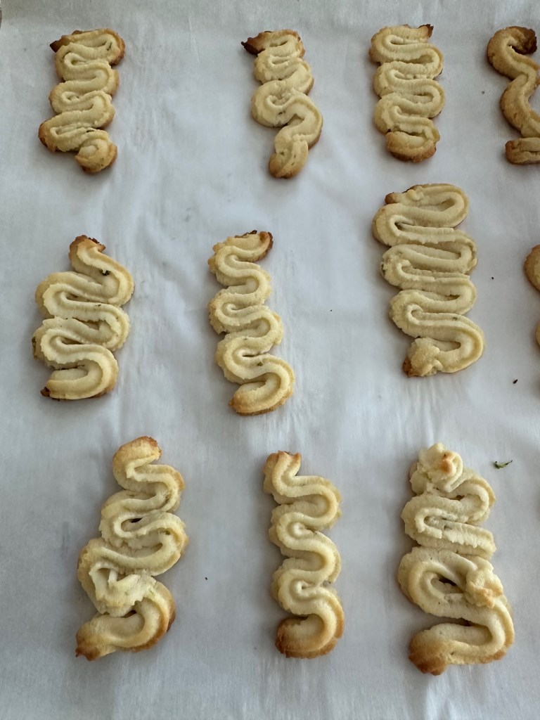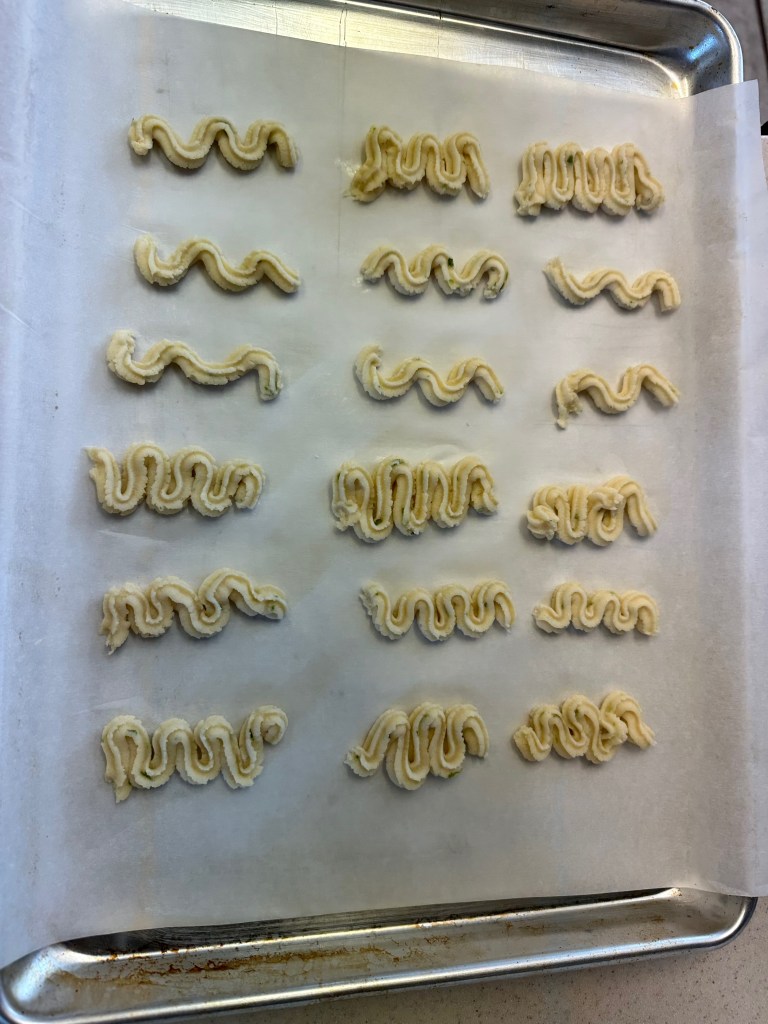 This is a basic/easy cookie. It’s a good introduce to cookies and piping, but that’s pretty much it. If you like lime cookies it’s a nice recipe, but there’s no element that really makes it stand out. Nonetheless, a good learning experience if you want practice with lime cookies or piping.